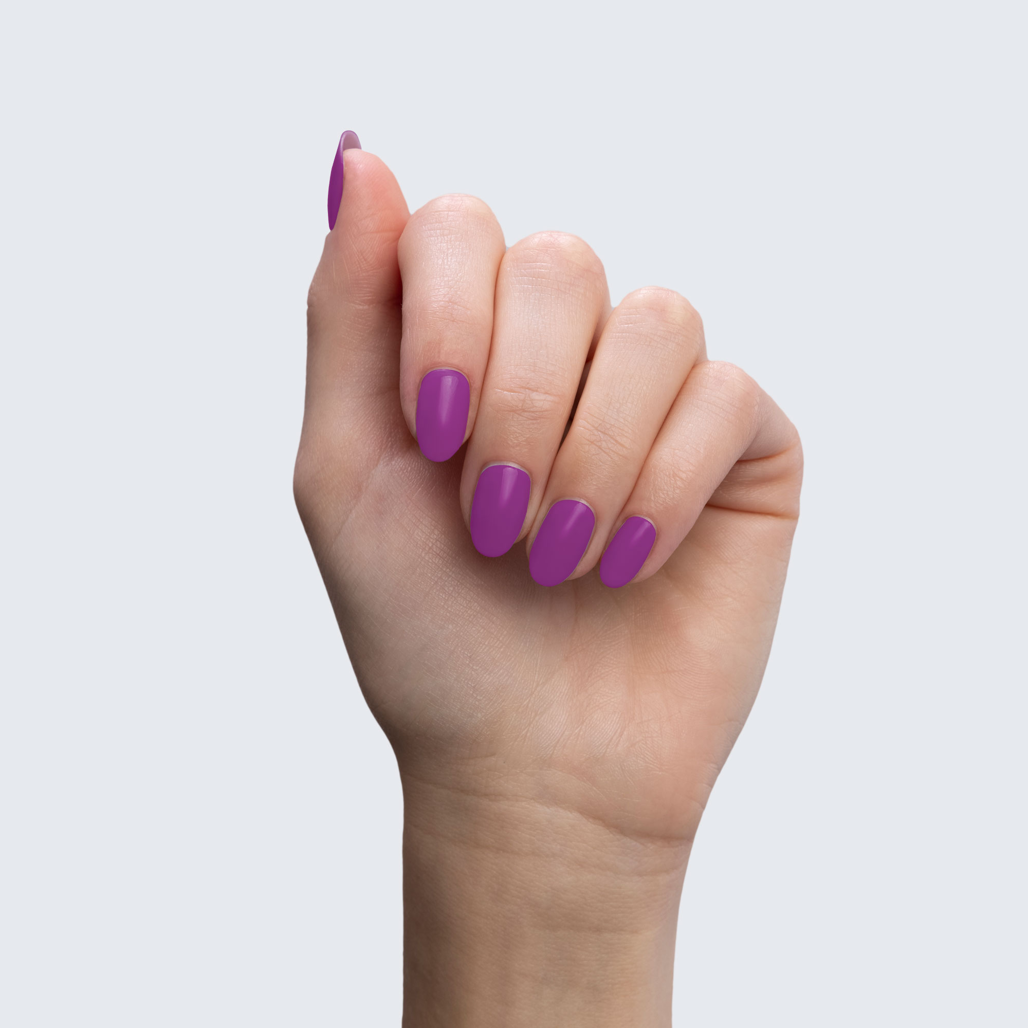 Neon magenta. Dark. Opaque. Semi-gloss. Cool undertone.